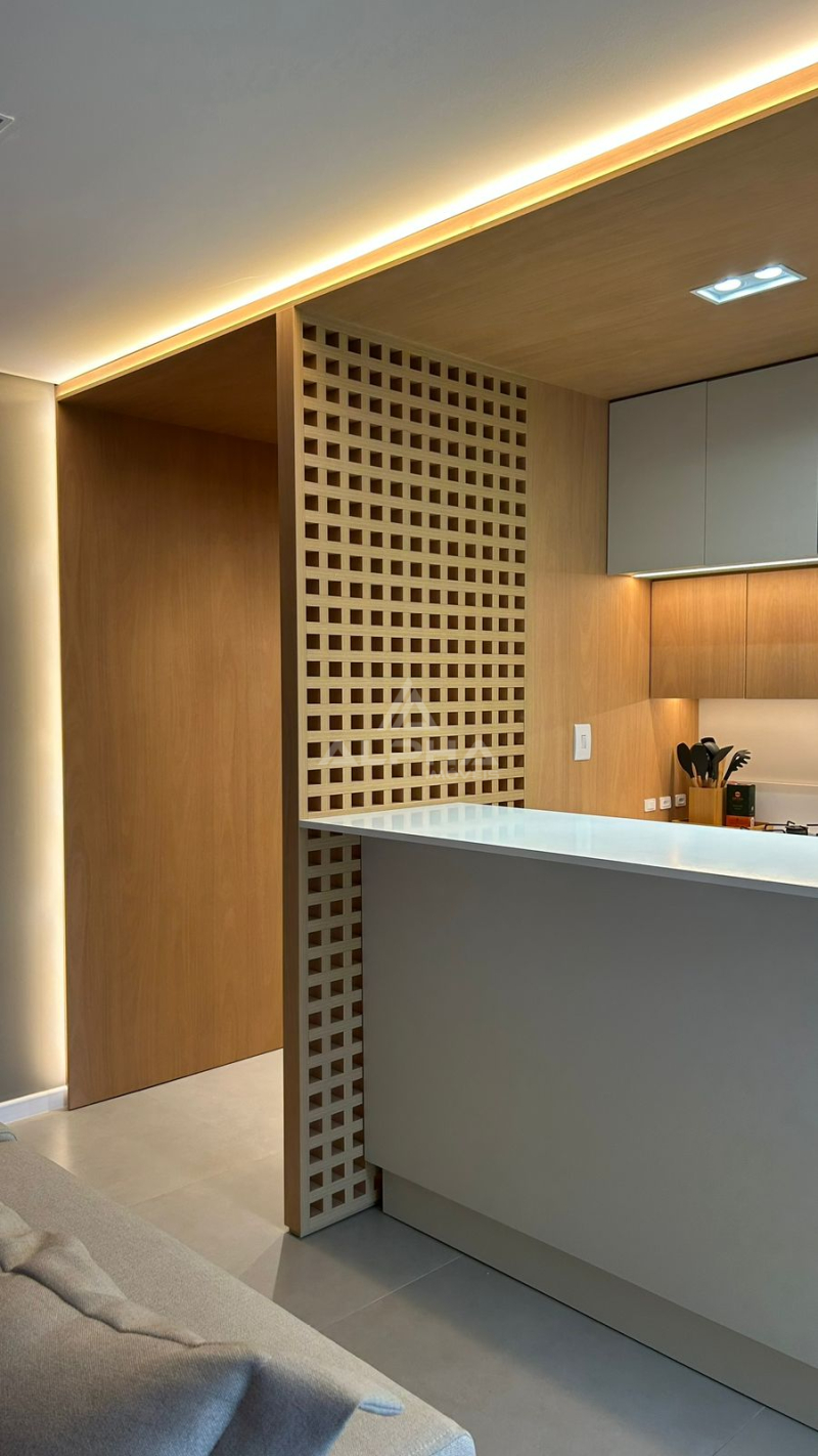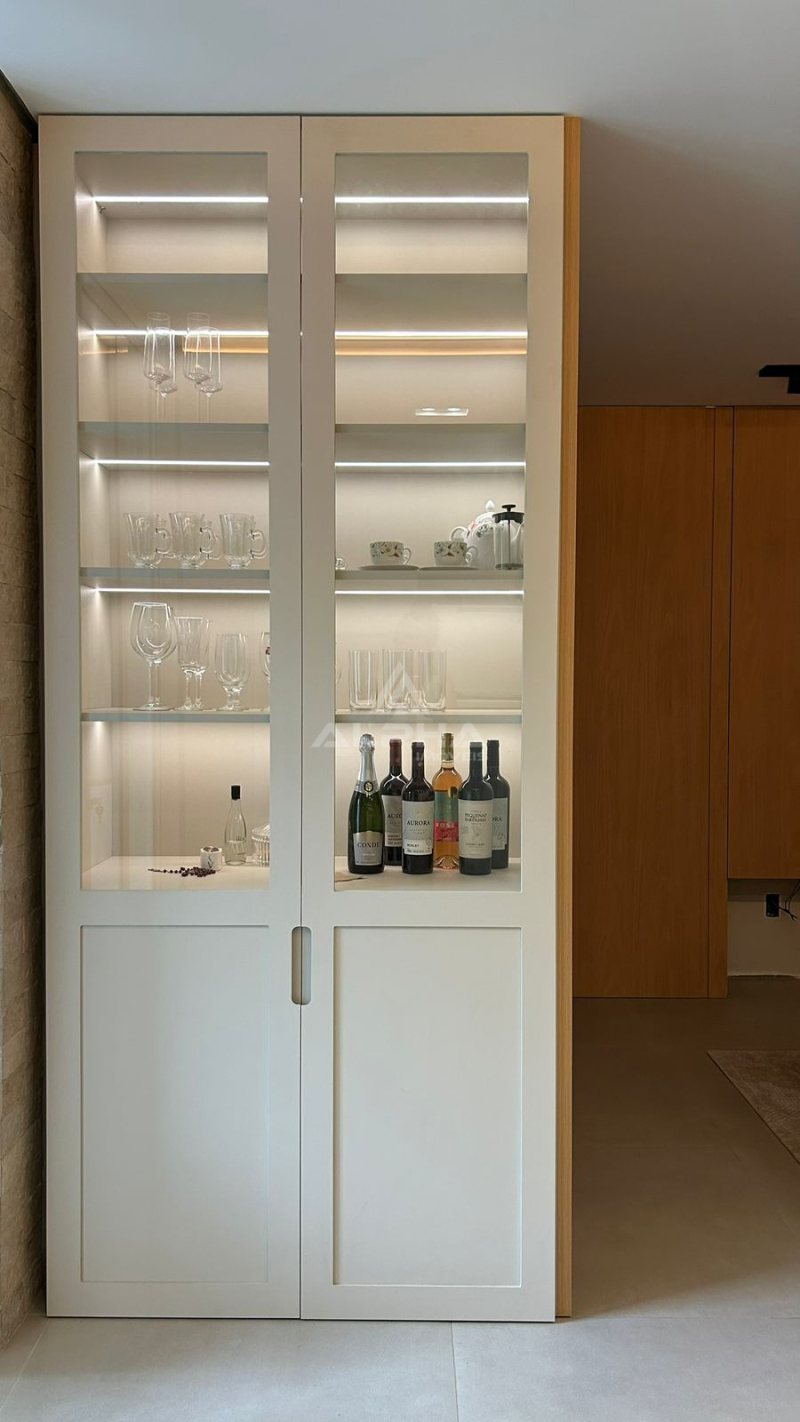 Ficam no imóvel: Cooktoop, forno de embutir, 01 cama casal box, climatizador na suíte, torneiras e cubas, banquetas.