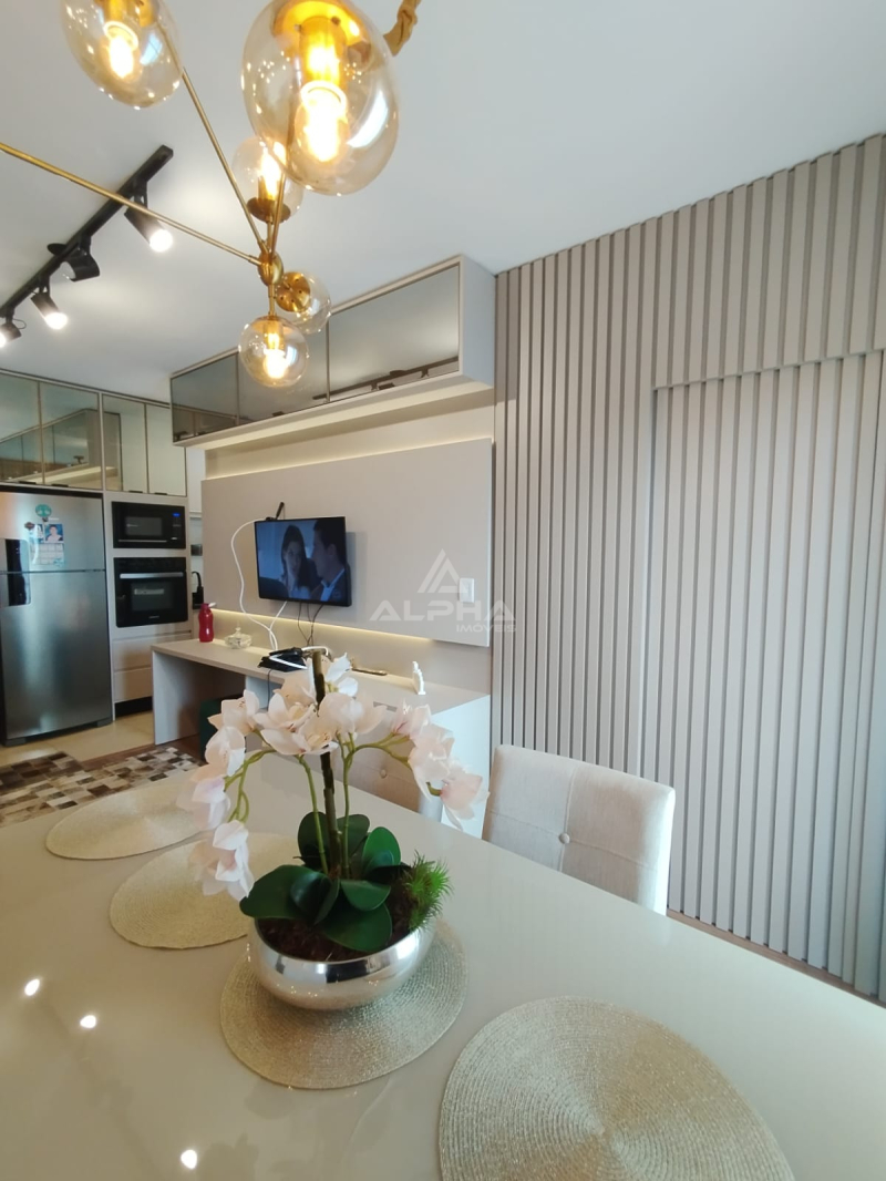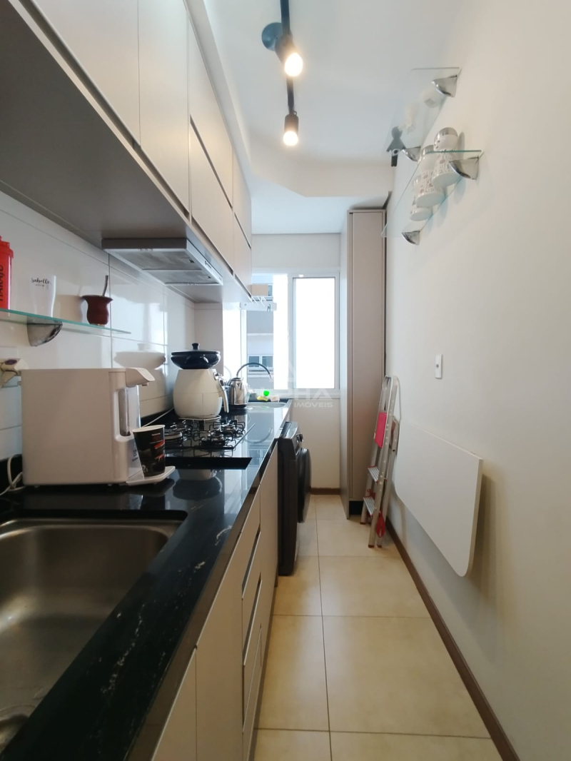 Apartamento com 2 quartos, sala, cozinha, banheiro e vaga de garagem.