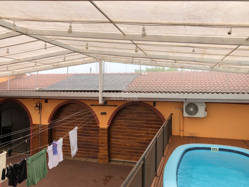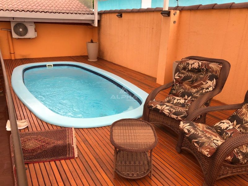 Conta com 03 dormitórios, sendo 01 suíte, 03 salas, 04 banheiros, área de serviço, despensa, churrasqueira, garagem com espaço para 2 carros e espaço para depósito. Além disso, esta casa possui energia solar fotovoltaica, piscina com aquecimento, piso interno novo em porcelanato, aberturas novas em madeira imbuia, rede elétrica nova e portões eletrônicos com 3 movimentadores.