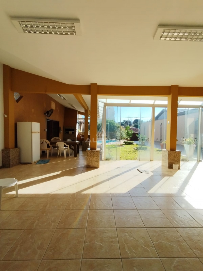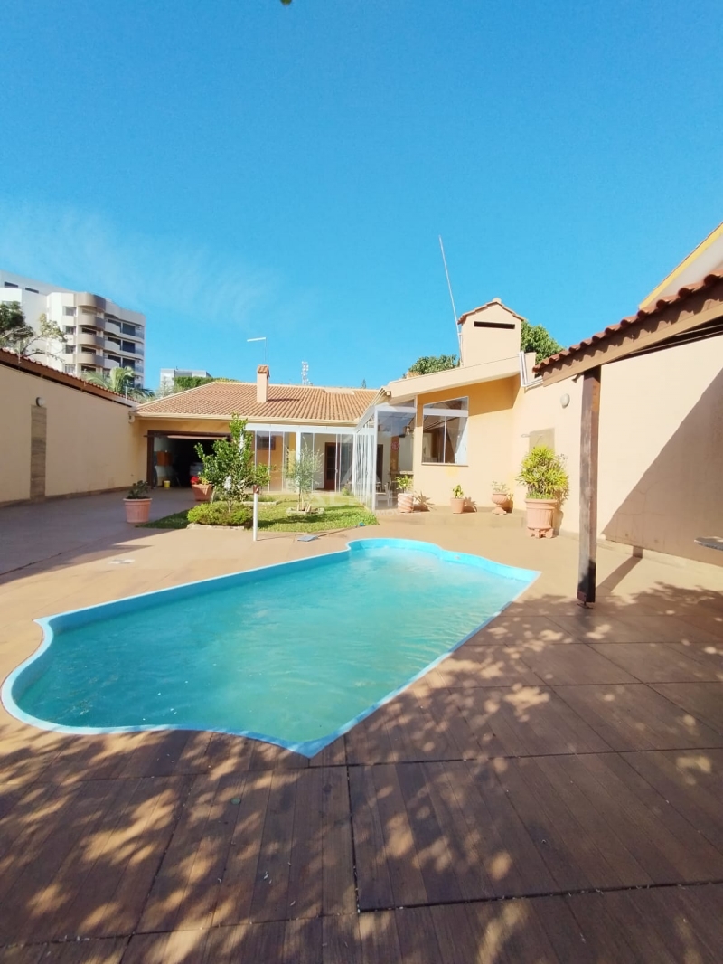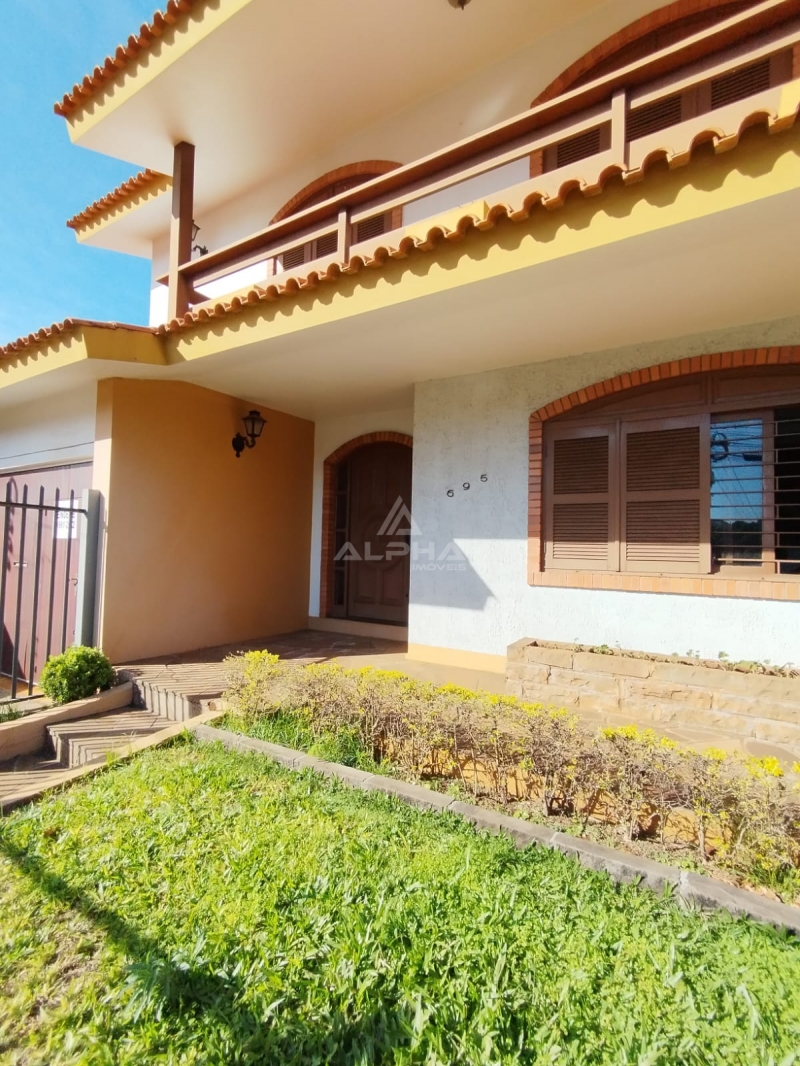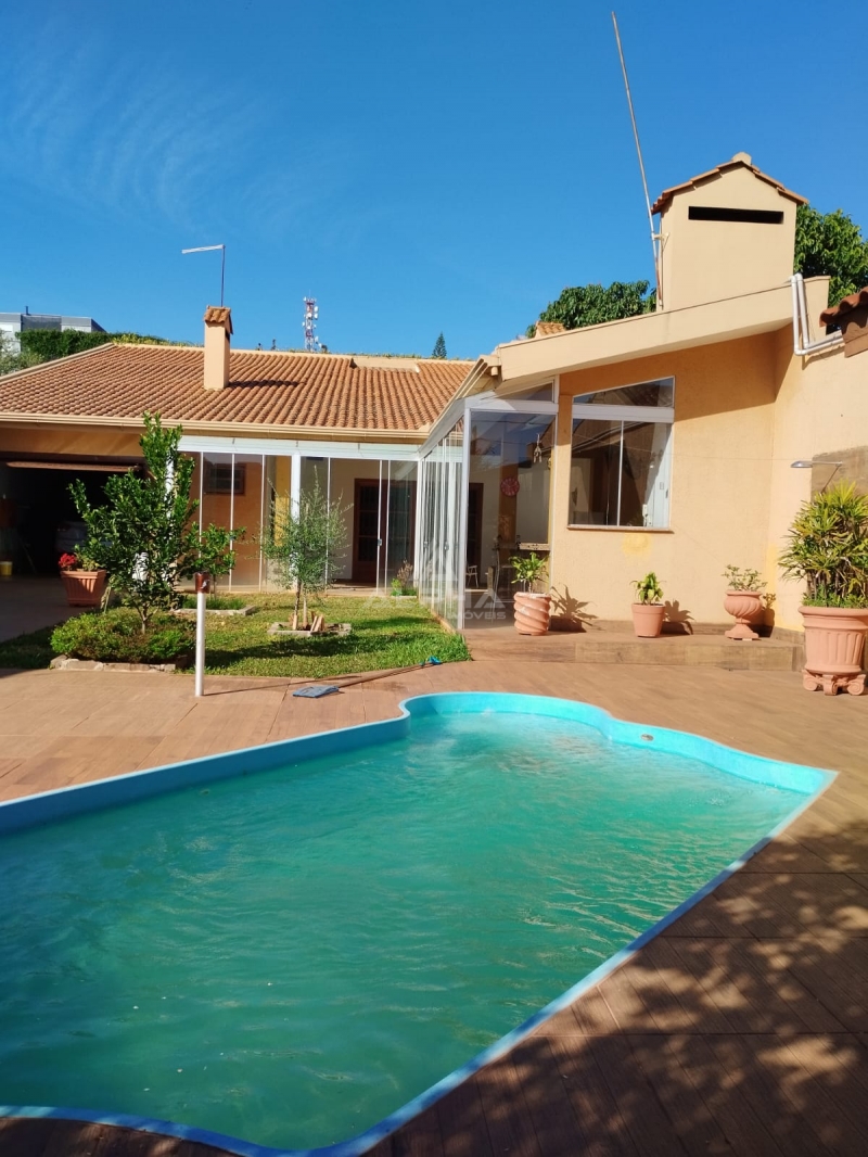 Casa, no centro de Santo Ângelo, composta por 3 quartos, sendo 1 suíte, 2 cozinhas, sala de jantar, sala de estar, 4 banheiros, 2 lareiras, 2 churrasqueiras, 1 living com adega no subsolo, 1 despensa, área de serviço, 1 lavabo, espaço gourmet e piscina.